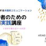 2021年6月22日 / 最終更新日時 : 2021年6月22日 大学NVC 共催イベント [6/26] 対人支援者のためのNVC入門実践講座 – 自分も相手も大切にする共感的コミュニケーション- 人が本来持つ力を取り戻すコミュニケーション:NVC あらゆる感情の奥にも大切な願いがあることを受けとめることができたなら、どのような可能性を手にすることができるのでしょうか。 自分自身の声に耳を澄まし、何を大切にしたいの […]