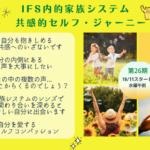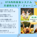 2023年10月18日 / 最終更新日時 : 2023年10月18日 GotoGo 共催イベント 【満員御礼✨Online11/14-12/19(火曜夜)】第25期 IFS 内的家族システム初級講座 〜パーツ意識で全体性とつながり自己理解を深める旅〜〔後藤ゆうこ&剛〕 ✨NVC x IFS(内的家族システム)のススメ✨ 〜NVCのニーズ意識と共にIFSのパーツ意識で全体性とつながり自己理解を深める旅〜 NVCを実践していても、 望むほど自分とつながれなかったり、 自己共感が難しいと感じ […]