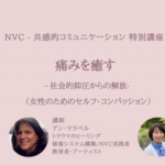 2021年6月23日 / 最終更新日時 : 2021年6月23日 ImaiMakiko 主催イベント [7/17] 痛みを癒す – 社会的抑圧からの解放- (女性のためのセルフ・コンパッション講座)NVC 私たちが抱える痛み。 そこには、「社会構造・システムによって引き起こされた痛み」が関係しています。 たとえば、虐待や暴力を受けたとき。 受けた傷や痛みを言葉にしても、その声をあげること自体がタブー視されていたり、社会のな […]