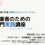 2024年3月29日 / 最終更新日時 : 2024年3月29日 大学NVC オンライン [3/30] 対人支援者のためのNVC入門実践講座 人が本来持つ力を取り戻すコミュニケーション:NVC あらゆる感情の奥にも大切な願いがあることを受けとめることができたなら、どのような可能性を手にすることができるのでしょうか。 自分自身の声に耳を澄まし、何を大切にしたいの […]