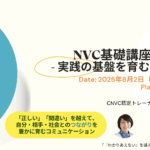 2025年6月3日 / 最終更新日時 : 2025年6月3日 大学NVC 共催イベント [8/2 & 3] NVC基礎講座 in 東京 – 実践の基盤を育む2 DAYS – [8/2-3] NVC基礎講座in東京(2 Days)